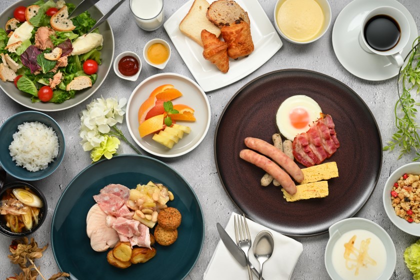 国内でも希少な純和鶏種「さくら卵」を使用した卵料理や クロワッサン、くるみレーズンなどの焼き立てパン、山形県産のソーセージなど、山形の恵まれた食材を中心に用い「身体に優しく」をテーマにしたメニューをビュッフェスタイルでご提供いたします。※画像はイメージです。